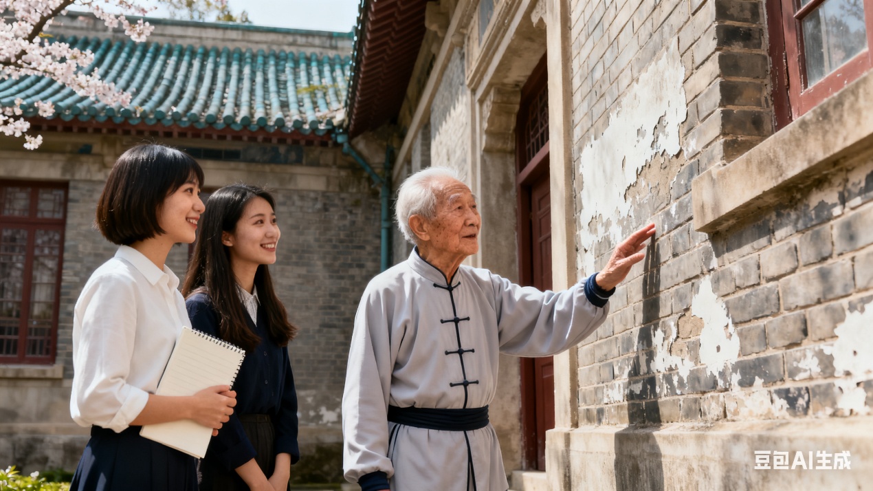 短短的交流,老教授的谈吐全是岁月打磨出的武大精神。为了表达敬意,用AI生成了一张名为“光华人与珞珈前辈对话”的图片。